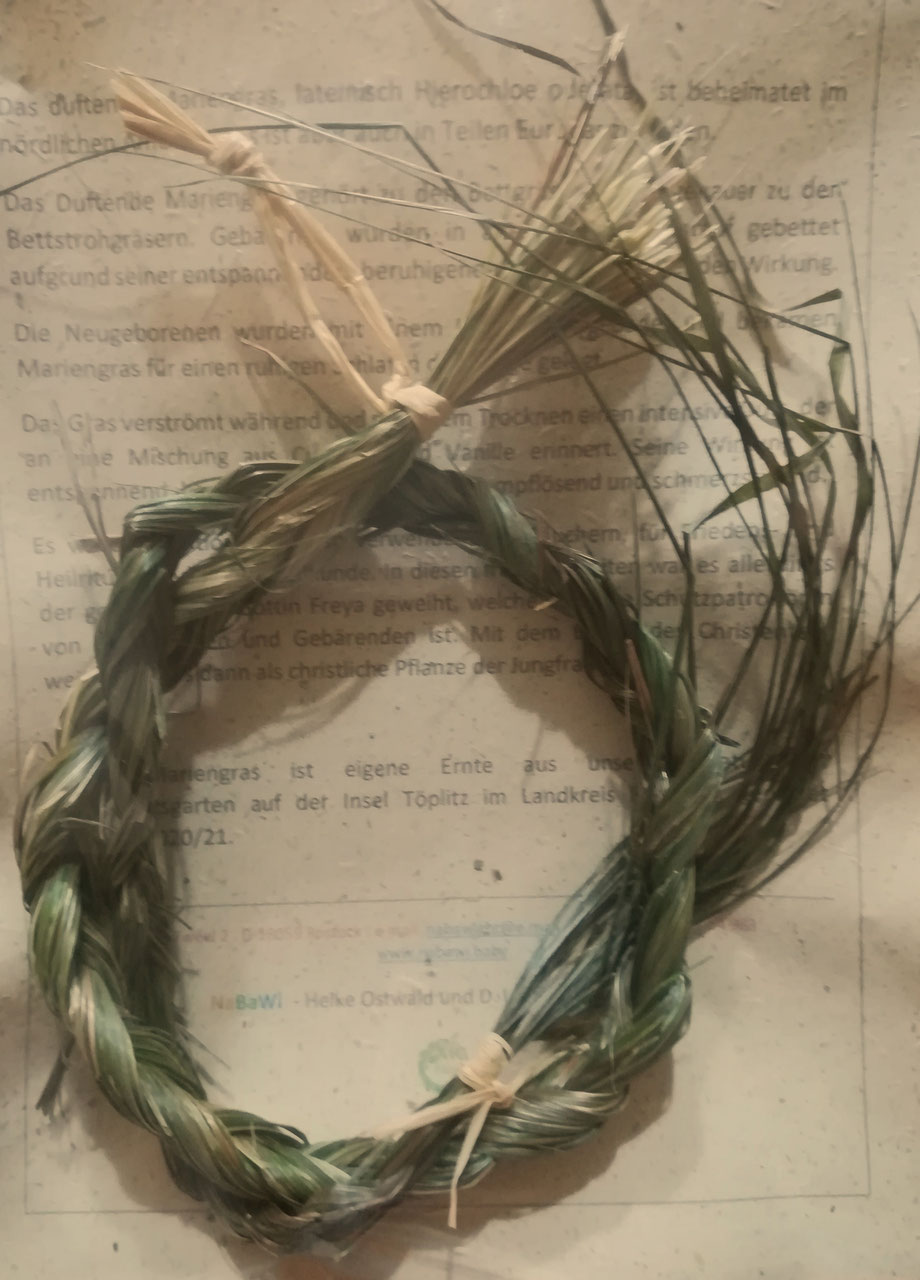 Das Duftende Mariengras, im amerikanischen Sweetgras genannt, ist beheimatet im nördlichen Amerika und auch in Teilen Europas zu finden. Es ist ebenso wie der weiße Salbei ein klassisches indianisches Räuchermittel. Das Gras verströmt während und nach dem Trocknen einen intensiven Duft nach Cumarin (erinnert an den Duft von Waldmeister und Vanille).